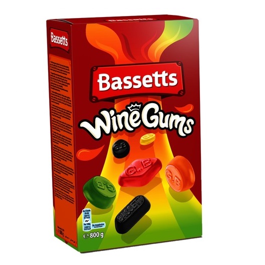 Sudėtis: gliukozės sirupas (sudėtyje yra sulfitų), cukrus, kviečių krakmolas, želatina (kiaulės), modifikuotas krakmolas, rūgštys (pieno rūgštis, acto rūgštis), kokosų aliejus, kvapiosios medžiagos, dažikliai (E 153, E 120, E 100, E 160e, E 141), glazūravimo priemonės (karnaubo vaškas, bičių vaškas). Alergenai: sudėtyje yra glitimo (kviečių), sieros dioksido ir sulfitų.