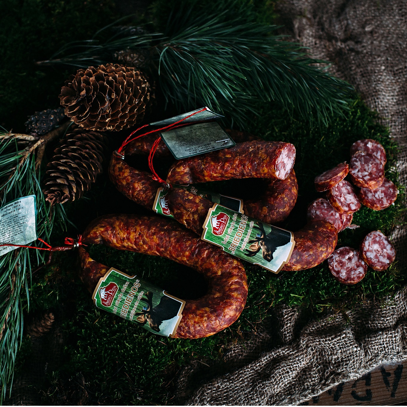 Sudedamosios dalys: briediena 52 %, kiauliena, kiaulienos riebalai, jautiena, druska, rūgštingumą reguliuojanti medžiaga gliukono-delta-laktonas, cukrus, antioksidantai askorbo rūgštis ir natrio askorbatas, prieskonių mišinys įvairiomis dalimis, česnakai, konservantas natrio nitritas.
