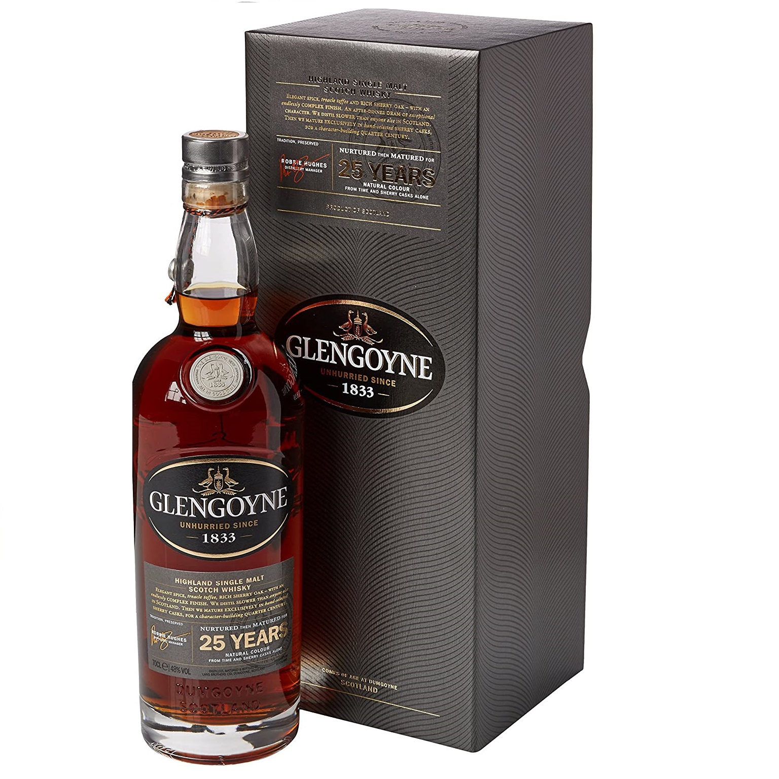 Šis 25YO salyklinis viskis iš Glengoyne distilerijos papildė Glengoyne gausią viskių šeimą 2014 metais. The Highland esančioje distilerijoje šiam viskiui gaminti naudojamas nedūminįs salyklas, kuris vėliau ketvirtį amžiaus brandinamas ex-chereso vyno statinėse