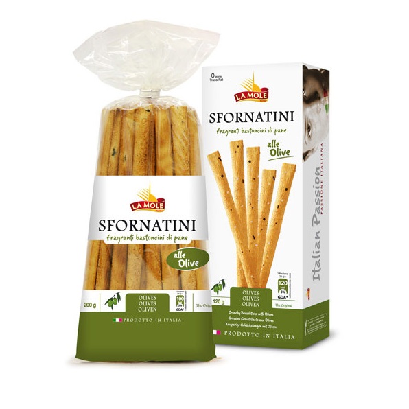 Traškios duonos lazdelės su alyvuogėmis. „Sfornatini“ yra natūralios, apetitą žadinančios natūraliai raugintos duonos lazdelės, lengvos, viliojančios ir tobulos kiekvienai užkandėlei