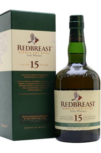 Single Pot Still distiliavimo inde distiliuotas Airiškas Redbreast 15 yra pilno kūno, tirštas, saldus, aštrus, turintis daug skonio viskis