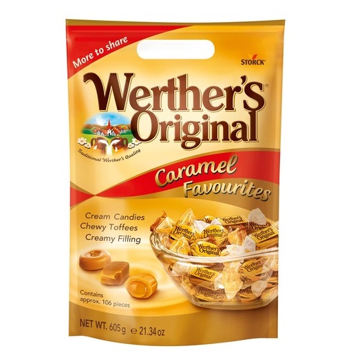 Atraskite „Werther's Original“ ir jo populiarių karamelės konditerijos gaminių pasaulį. Mėgaukitės auksine šilumos ir komforto akimirka. „Werthers Original Caramel Favorites“ - ilgai išliekantis kramtomas irisas ir skanus kreminis įdaras. Kilmės šalis: Vokietija