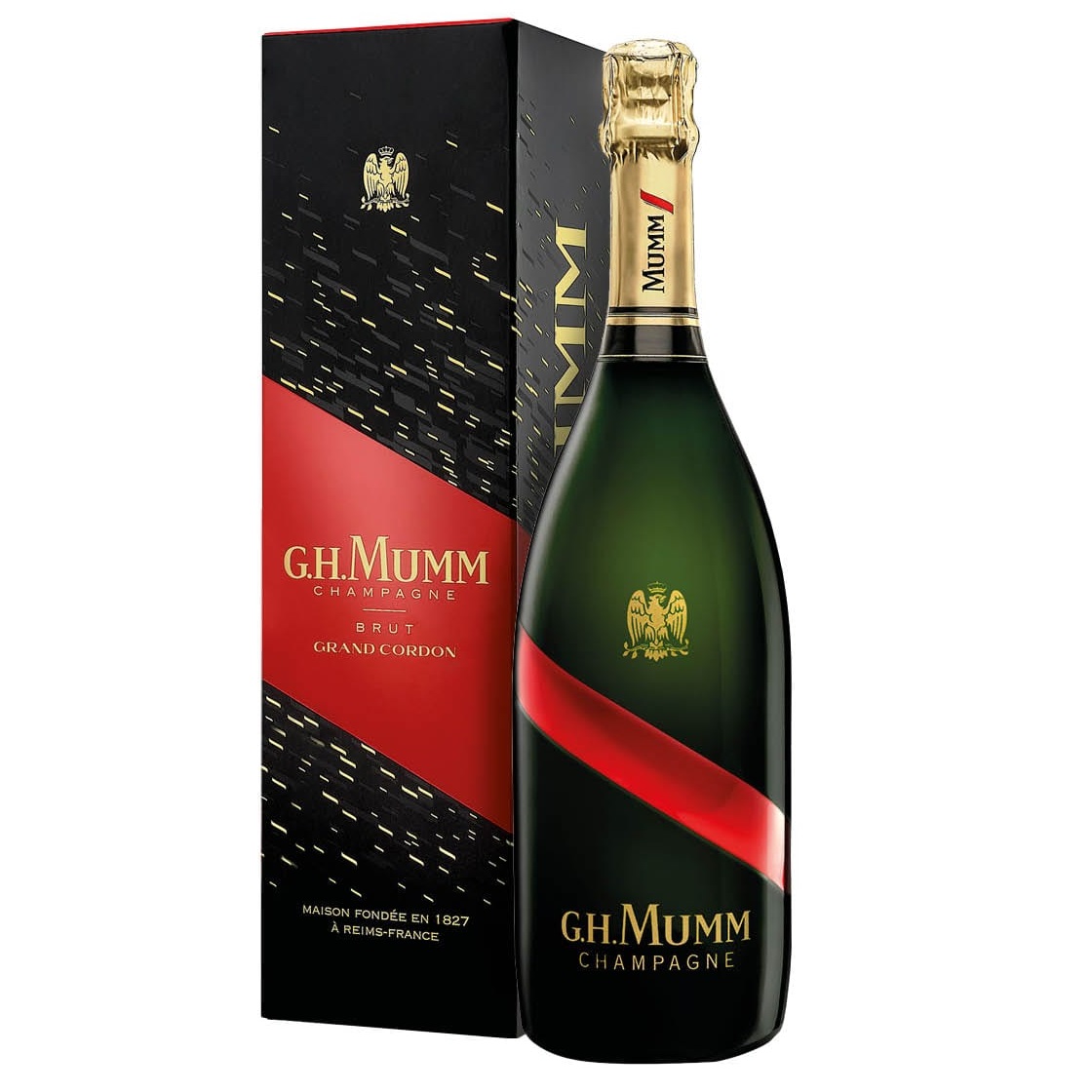 Naujas, revoliucingas šampano butelis Mumm Grand Cordon yra šampano namų vyriausio vyndario (Chef de Caves) ir dizainerio Ross Lovegrove dinamiško požiūrio rezultatas, kurie sukūrė butelį su raudonu kaspinu, įspaustu į taurę vietoje tradicinės „Mumm“ etiketės. Raudonas kaspinas simbolizuoja Garbės legiono ordiną