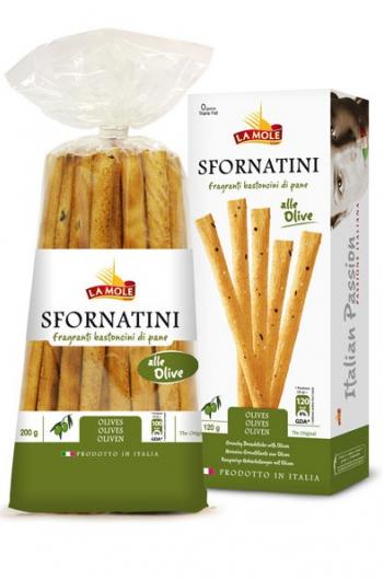 Traškios duonos lazdelės su alyvuogėmis. „Sfornatini“ yra natūralios, apetitą žadinančios natūraliai raugintos duonos lazdelės, lengvos, viliojančios ir tobulos kiekvienai užkandėlei
