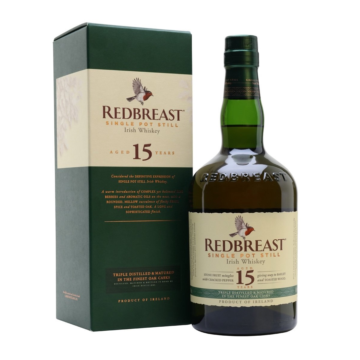 Single Pot Still distiliavimo inde distiliuotas Airiškas Redbreast 15 yra pilno kūno, tirštas, saldus, aštrus, turintis daug skonio viskis