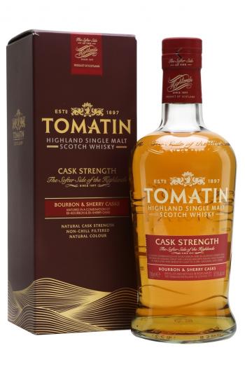 Tomatin Cask Strenght puikiai papildomo visą Tomatin asortimentą. Brandintas burbono ir oloroso-chereso statinėse, ragaujant pajusite sirupo, imbiero, salyklo ir marcipano natas